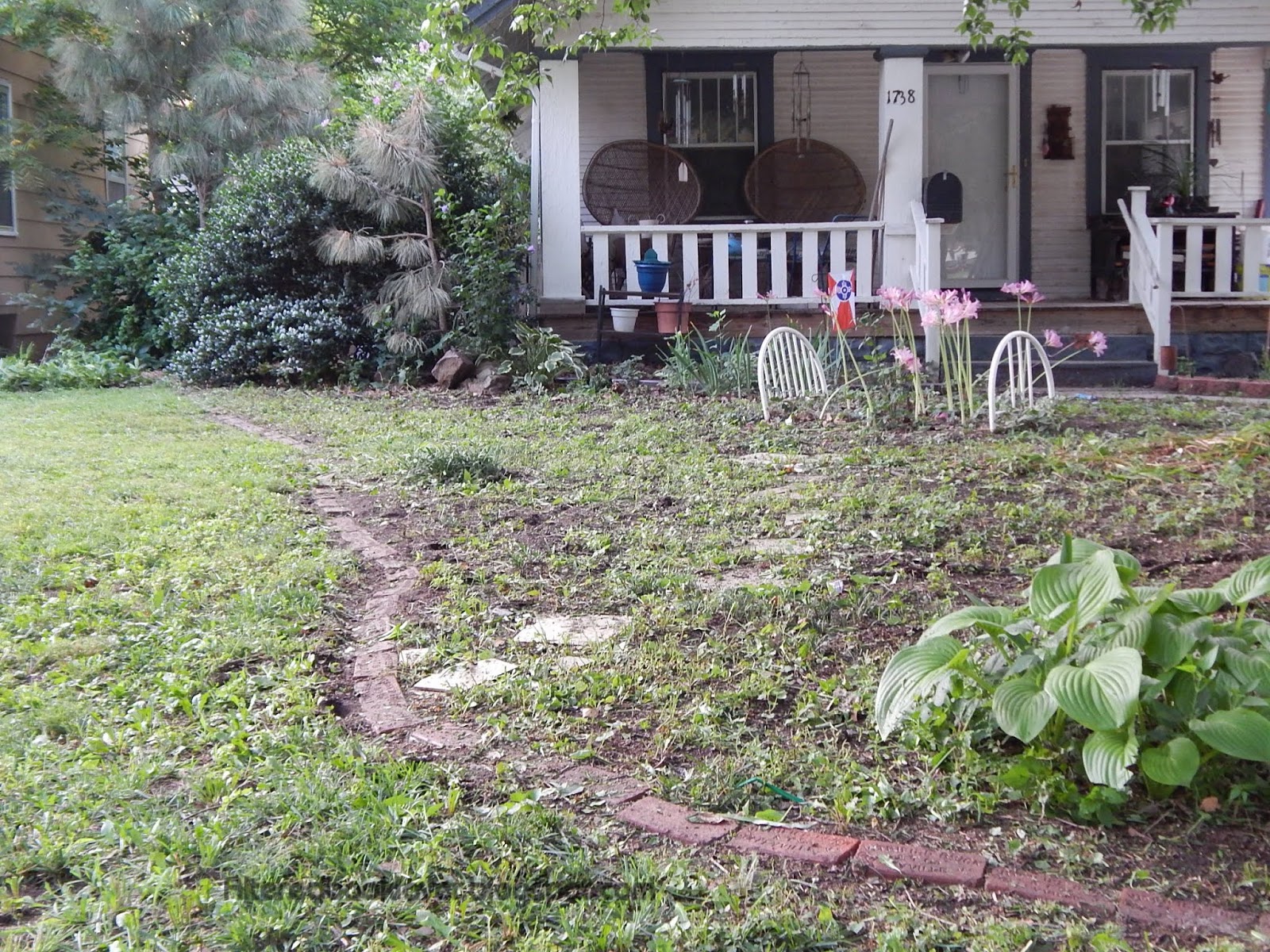 My allergies and illness in July kept me from mowing. I was surprised the city didn't cite me for allowing my yard to get in such bad shape. I hadn't seen my bricks in ages, so was happy when I unearthed them with the weed eater/edger.