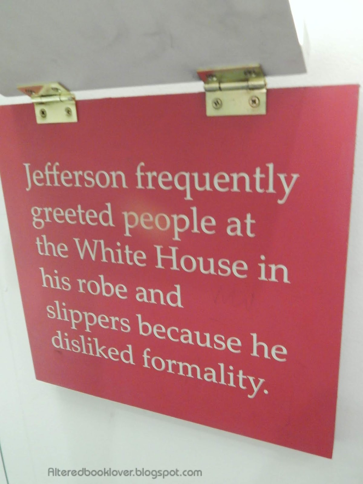 Number 3 belongs to Thomas Jefferson. Note the timeline that runs throughout. Jefferson was a Democratic Republican and is best known for being the author of the Declaration of Independence. He sold his books to the Library of Congress after the British burned the capitol. These nearly 7000 books are the foundation of the Library of Congress's collection.