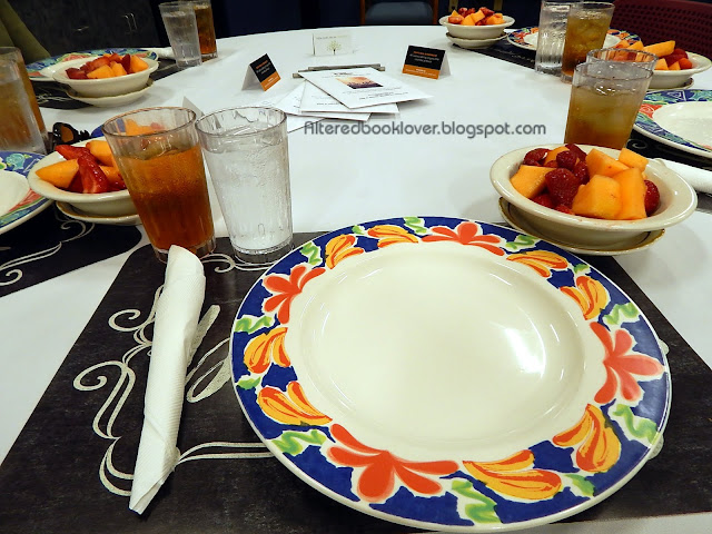 The various tables had already been set and water and iced tea were already poured and in glasses. The fruit salad which consisted of fresh strawberries and cantaloupe looked appealing.
