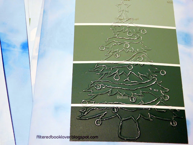 When the sheets of card stock had been colored, I created a template for the tree I would eventually add.